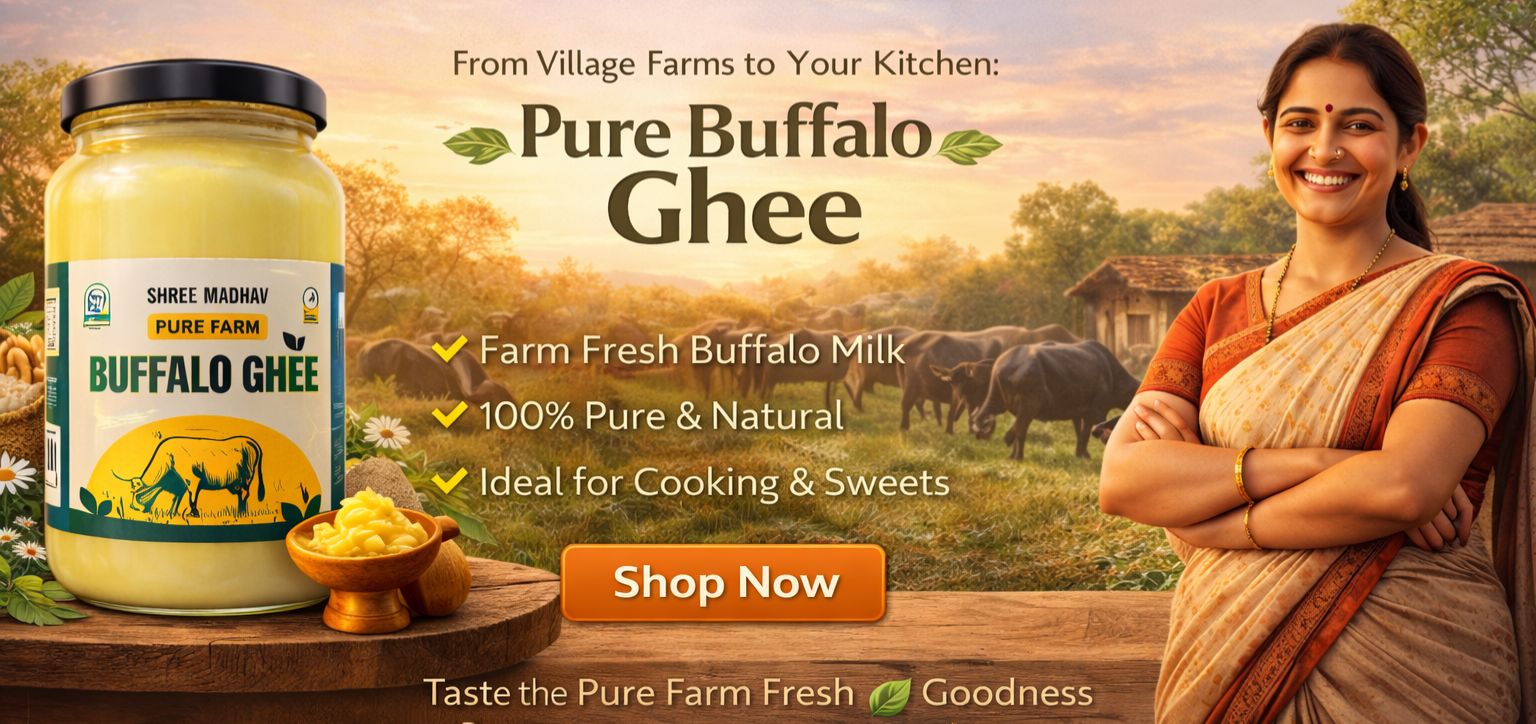 Shree Madhav Dairy is dedicated to providing pure and natural dairy products prepared using traditional methods. Our journey started with a simple vision — to deliver high-quality ghee and dairy products that are free from chemicals, preservatives, and artificial additives.